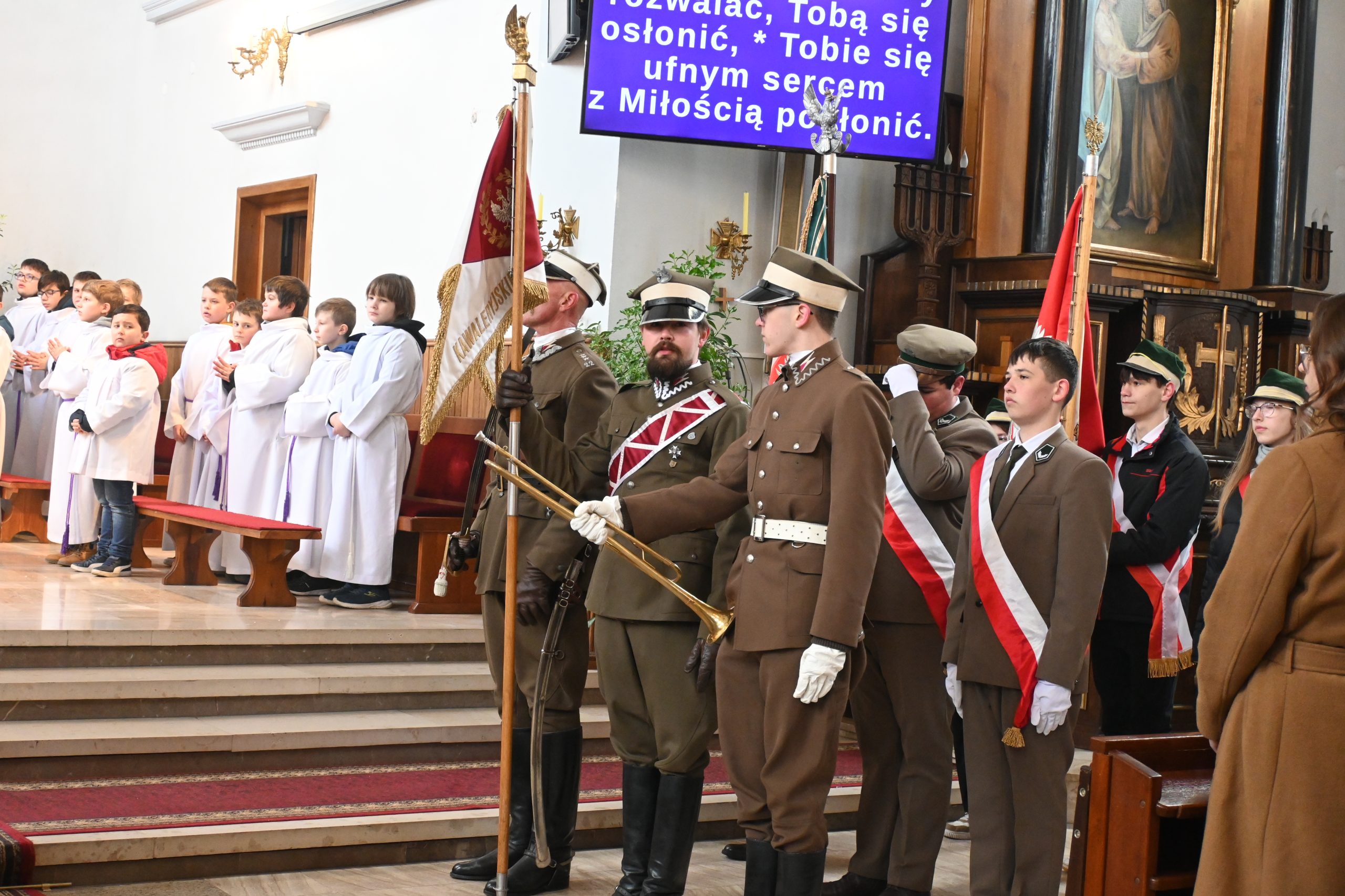 Podczas uroczystej mszy świętej w kościele pw. Nawiedzenia Najświętszej Maryi Panny celebrujący nabożeństwo ksiądz Roman Zając przytoczył słowa profesora Krzysztofa Szwaczka „Biedny naród, który nie ma swoich bohaterów, ale nędzny naród to taki, który o nich nie pamięta” i dodał „My nie jesteśmy narodem biednym (…) mamy bohaterów, którzy oddali życie za ojczyznę w tym miejscu, na naszym podwórku. Nie jesteśmy też narodem nędznym gdyż każdego roku przychodzimy, aby pamiętać o naszych bohaterach.”