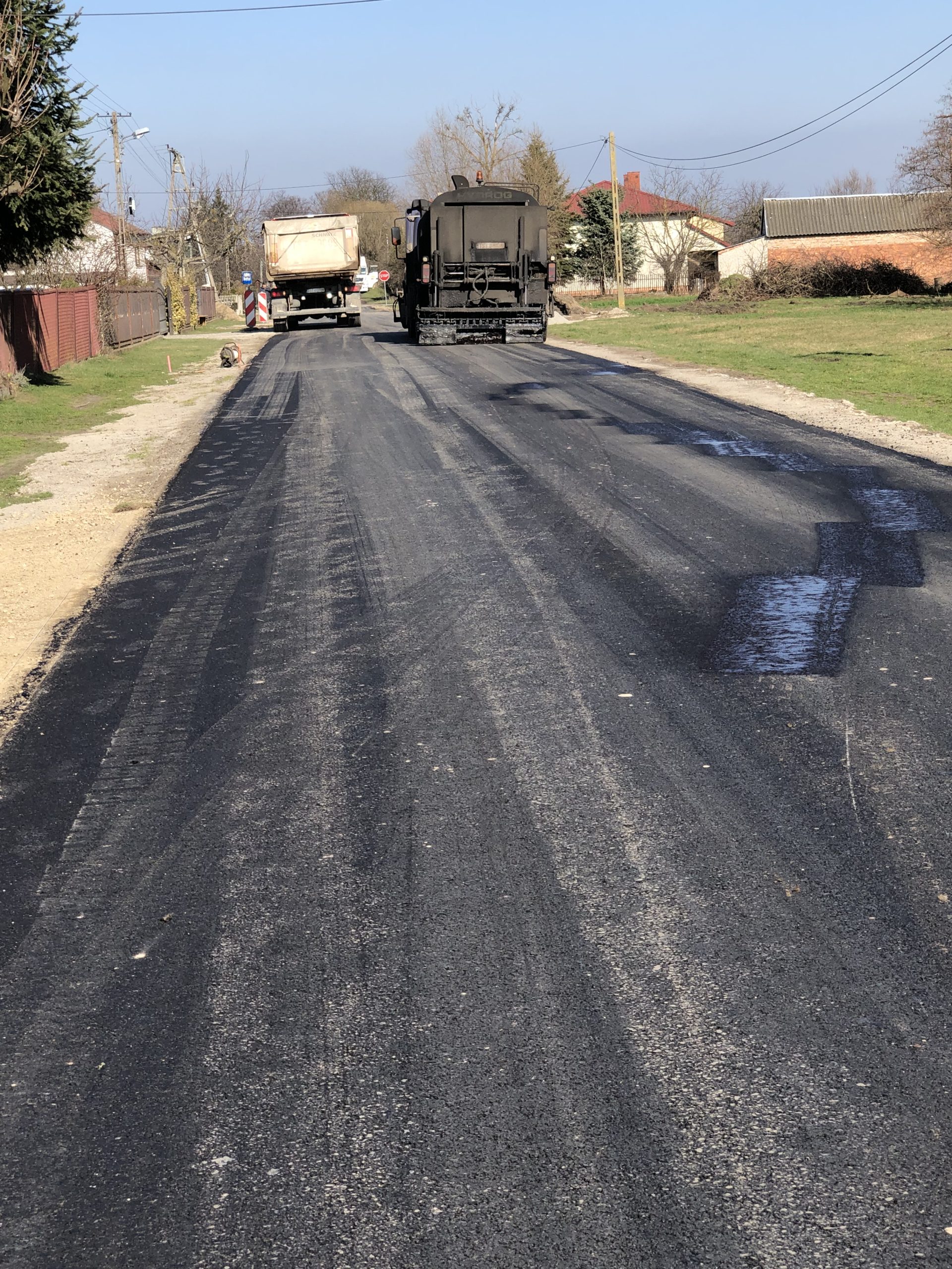 Miło nam poinformować, że budowa drogi dobiega końca. Wykonawca rozpoczął ostatni etap, tj. położenie drugiej warstwy asfaltu, co pozwala stwierdzić, że roboty prowadzone są zgodnie z harmonogramem i zakończą się jeszcze przed Świętami Wielkanocnymi.