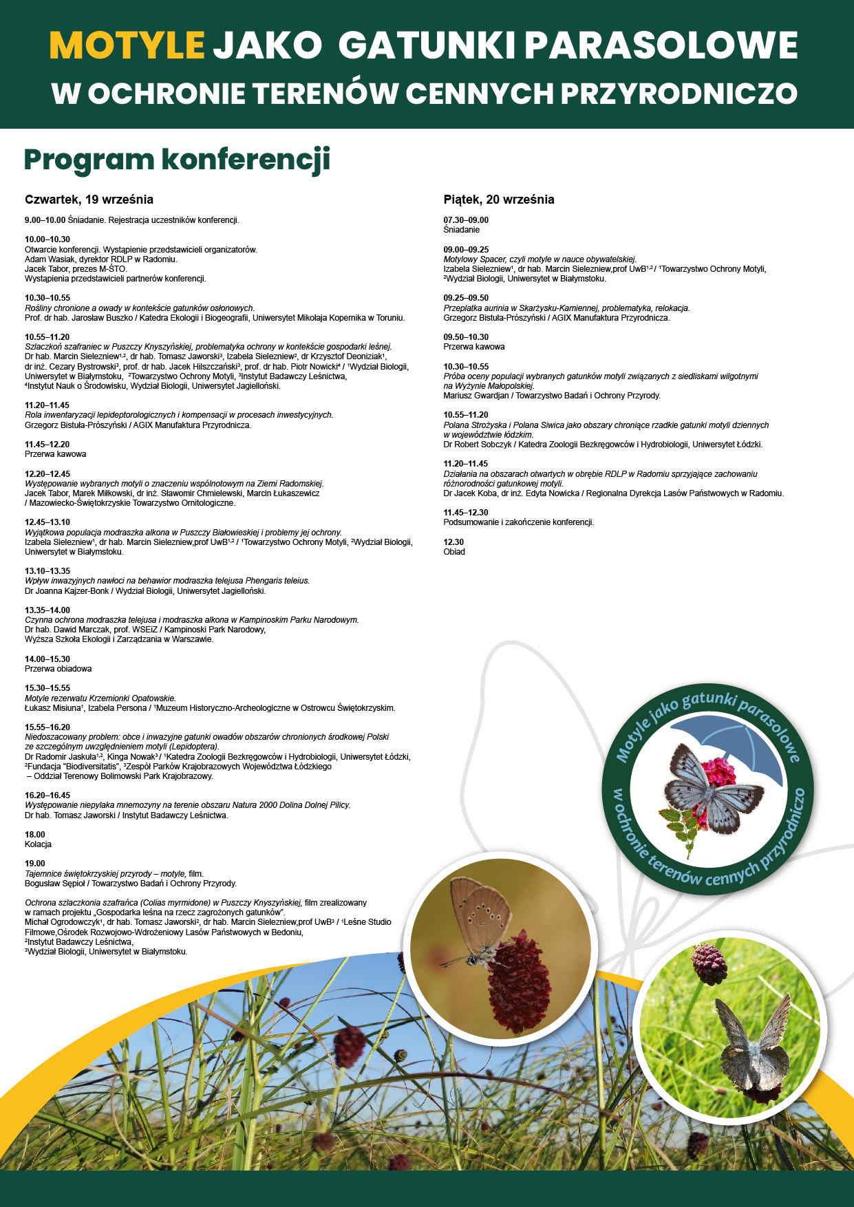 Konferencja ma charakter naukowy oraz popularyzujący działania na rzecz ochrony motyli o znaczeniu wspólnotowym, jako gatunków parasolowych w ochronie terenów cennych przyrodniczo, w szczególności terenów podmokłych. Przedsięwzięcie ma na celu wymianę wiedzy i doświadczeń prelegentów i uczestników w obszarze ochrony takich gatunków jak: modraszek telejus, modraszek nausitous, modraszek bagniczek, modraszek alkon, czerwończyk nieparek, czerwończyk fioletek, a także innych środowisk, np.: szlaczkoń szafraniec, modraszek arion i inne. Podczas wydarzenia odbędzie się podsumowanie inicjatyw i działań, badań naukowych, wymiana wiedzy oraz perspektyw i dobrych praktyk w ochronie motyli.