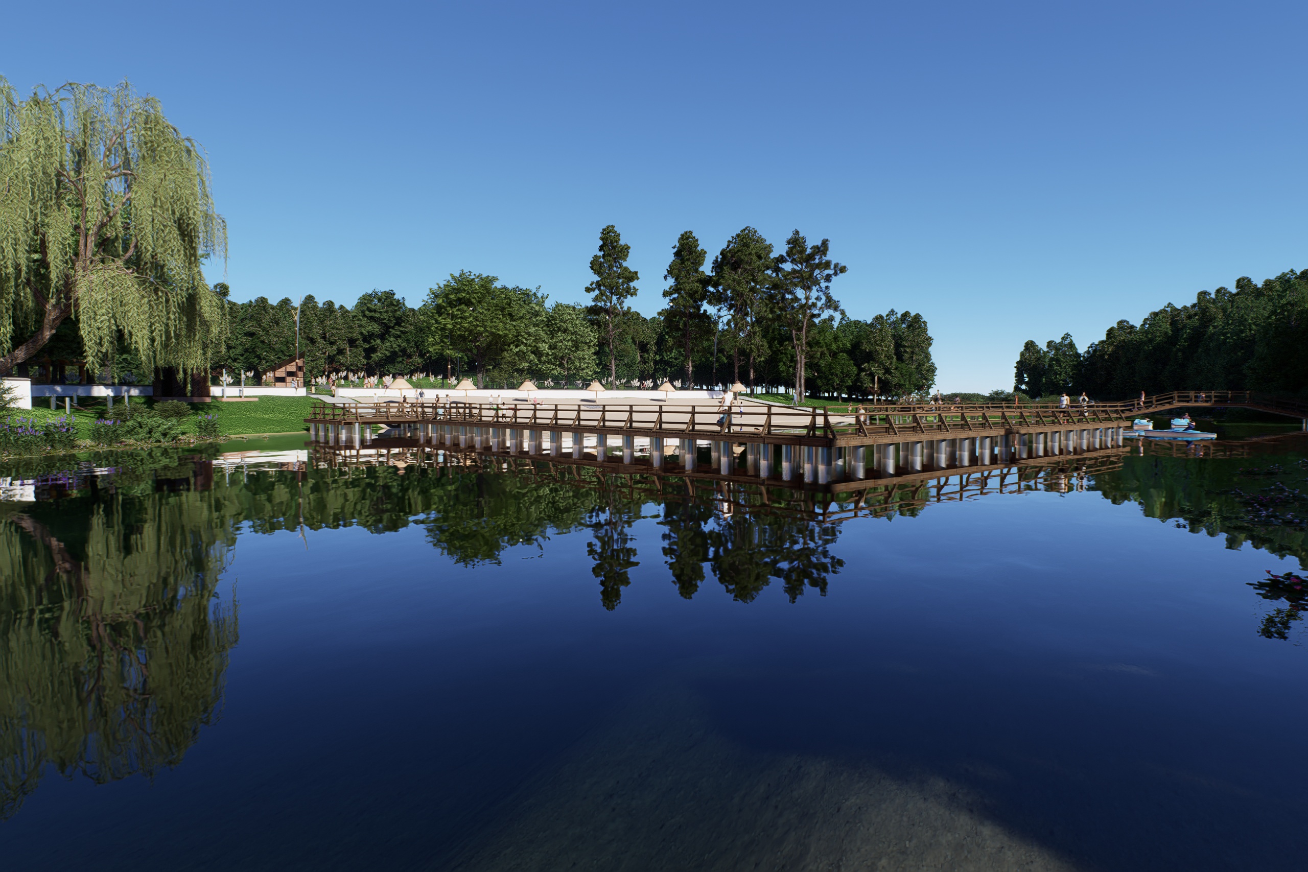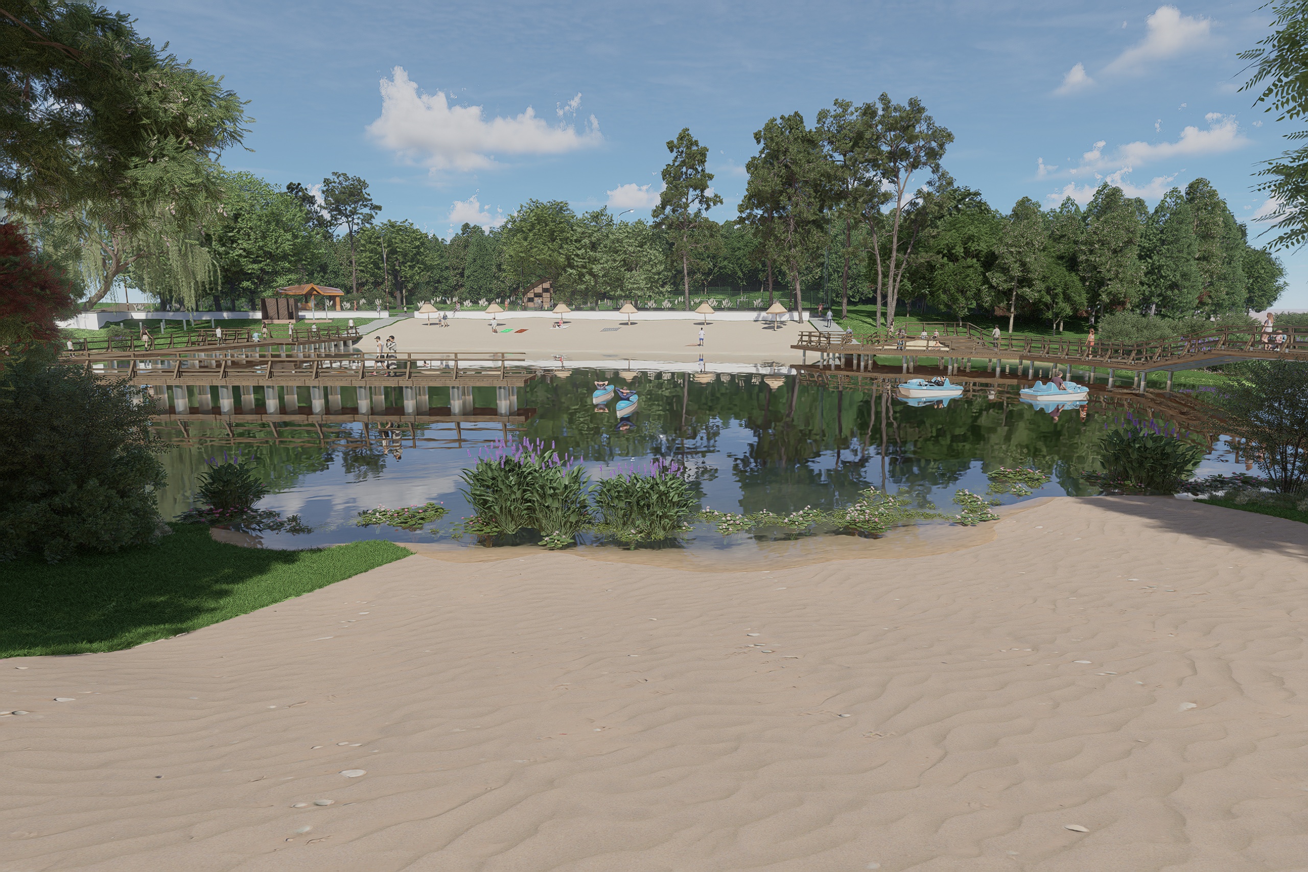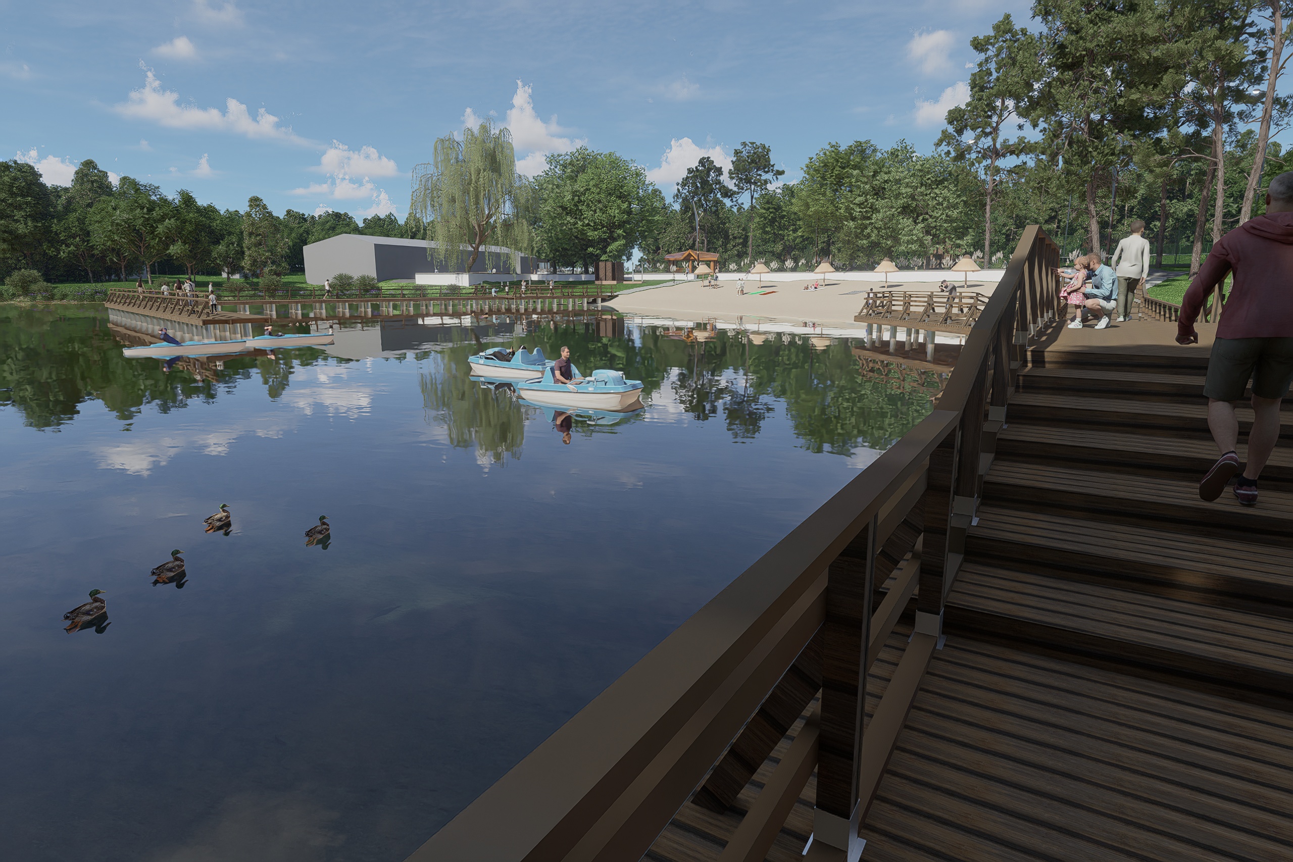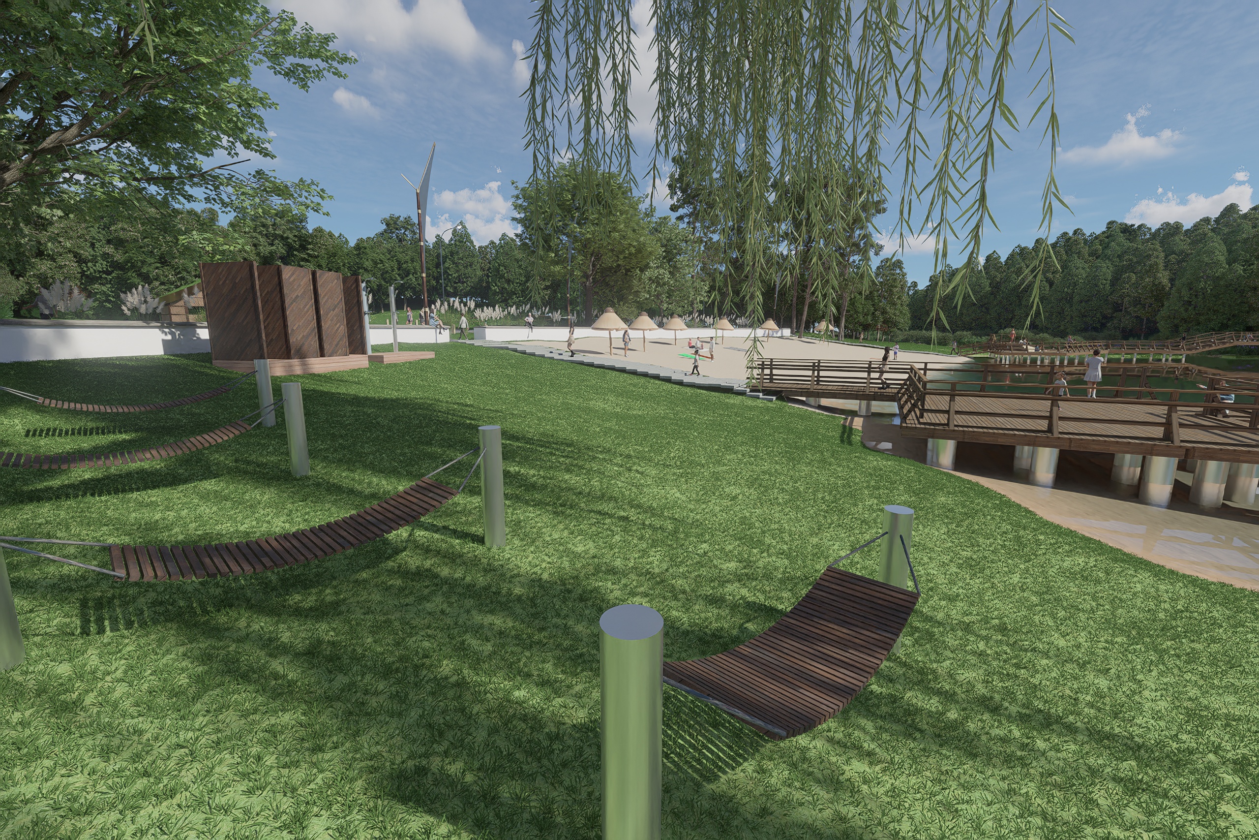 Wizualizacja efektów prac końcowych robią wrażenie. Przebudowane zostaną tamy, w związku z czym podniesie się lustro wody i zmieni się linia brzegowa. Odmienione oblicze zyskają również plaża, amfiteatr oraz plac zabaw. Pojawią się nowe chodniki, oświetlenie oraz tężnia. Więcej niż słowa powiedzą jednak zdjęcia. Oto wizualizacja Polanki po pracach modernizacyjnych.