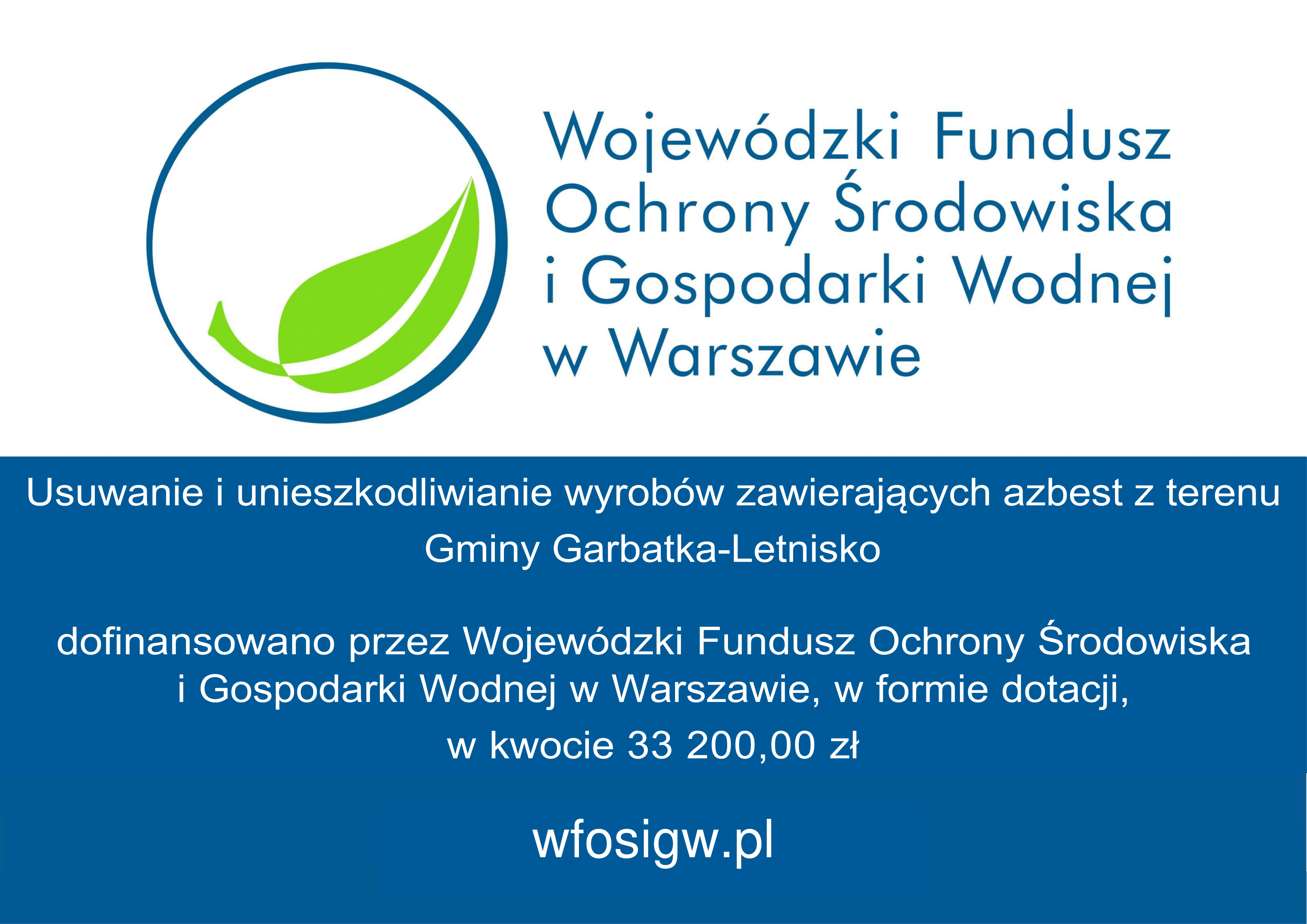 • Usuwanie i unieszkodliwianie wyrobów zawierających azbest z terenu Gminy Garbatka-Letnisko
