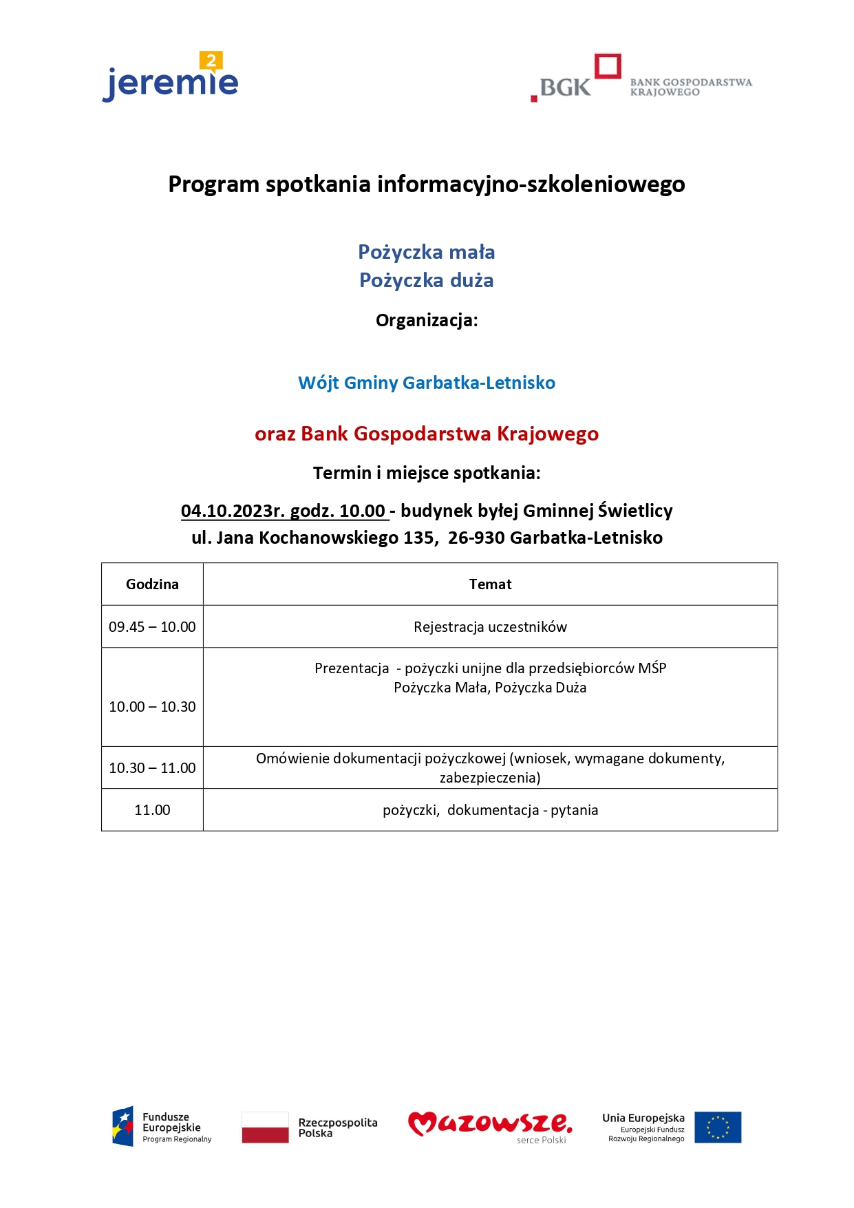 Spotkanie odbędzie się 04.10.2023 o godzinie 10.00. Więcej wiadomości w załączonych materiałach